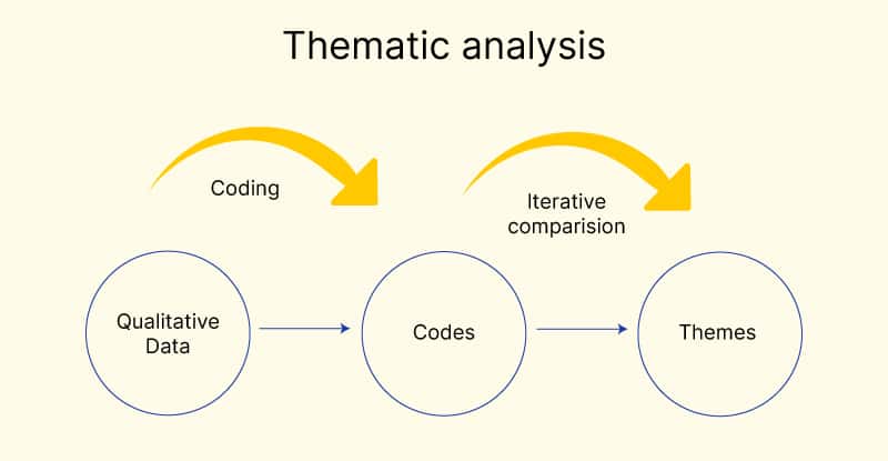 As the name suggests, Thematic Analysis means analyzing the patterns of themes in data. It is a method of qualitative data analysis. It means this method can be used to analyze non-numerical data such as textual feedback you gather using surveys.